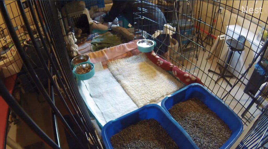 I am also planning to put two rolled-up towels in the space behind the Nest door. I can see a time coming where the kittens might try to climb that door and that space could potentially imprison them when they fall down. Nerves about that space again! We don’t want that to happen…. That is for later today, because I need to be able to reach across the crate for that. Best way to do it is probably from the second crate in a position where Mom can watch me, but not get irritated with me. It might not be for today, because so much has already been changed in the space.