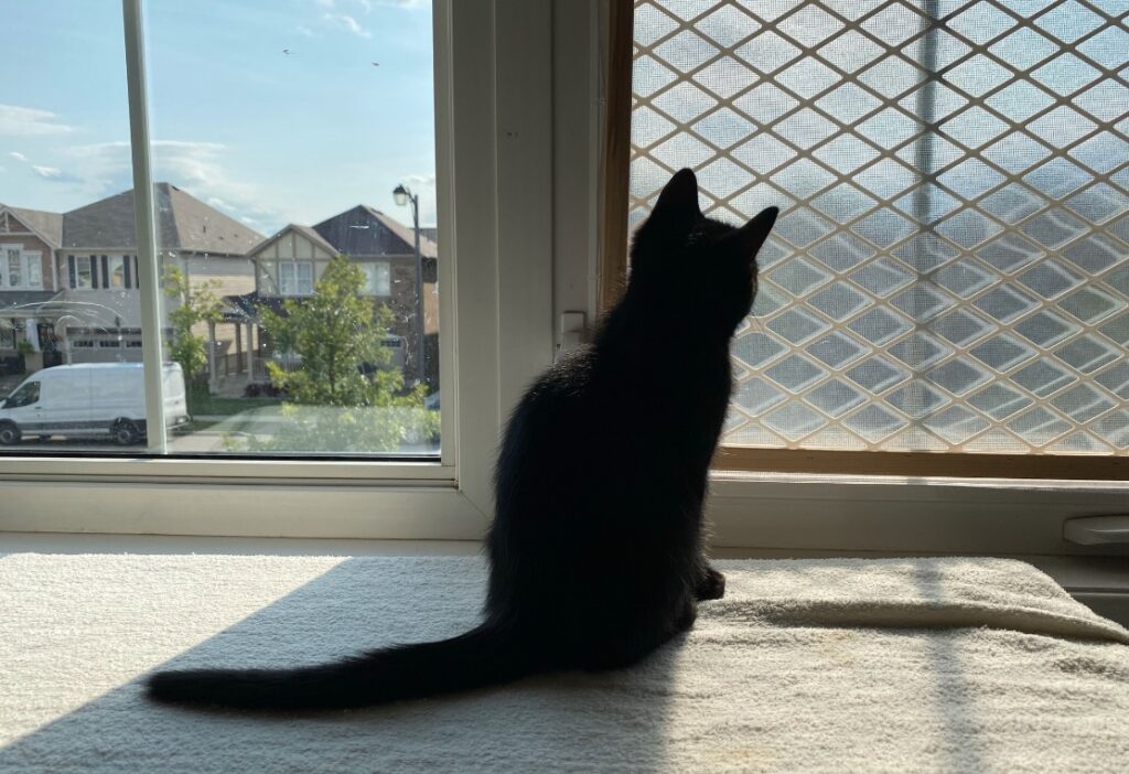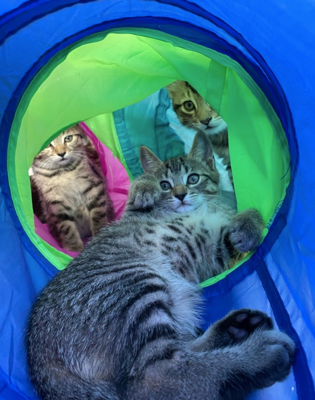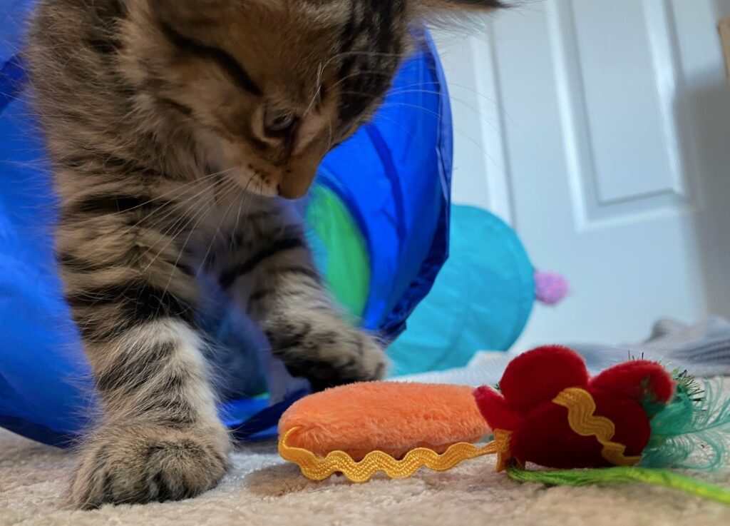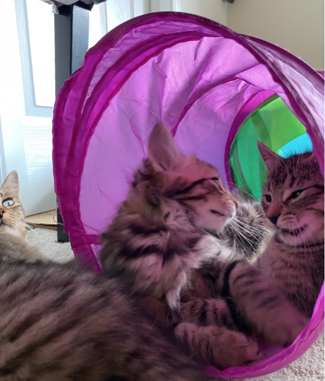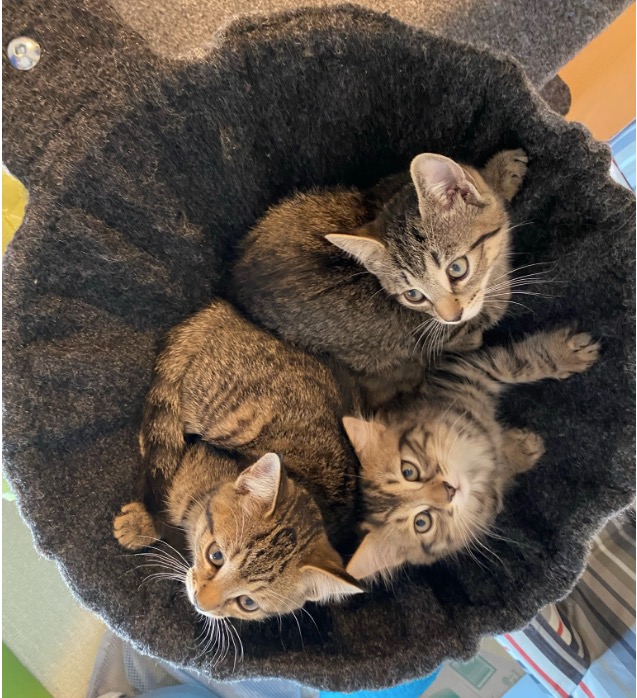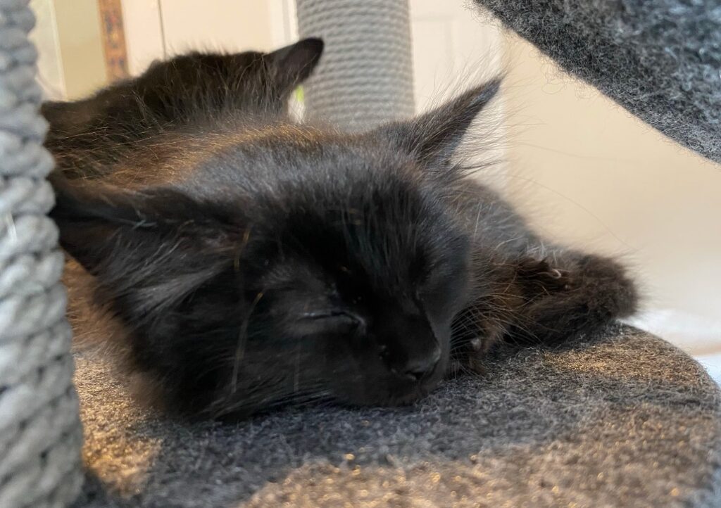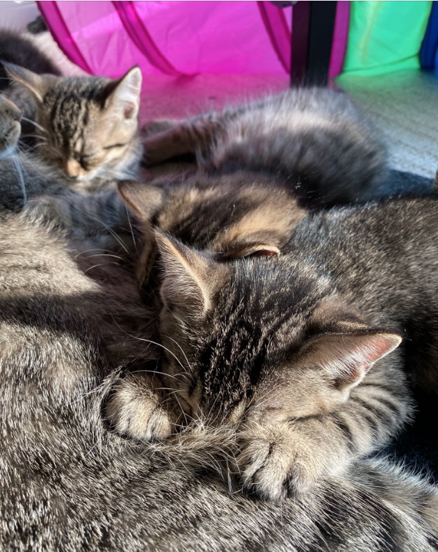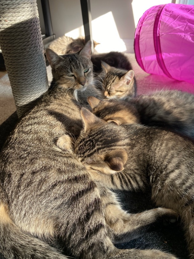 Oh and we noticed that the kittens were not eating a lot, yesterday and today, in particular not during afternoon snack time. I think we figured out why… it seems that they are all in a happy place and managed to drink quite a bit from Mitsy (who eats normally)… Nothing beats snacking from mother nature, no matter how tasty the wet foods are!