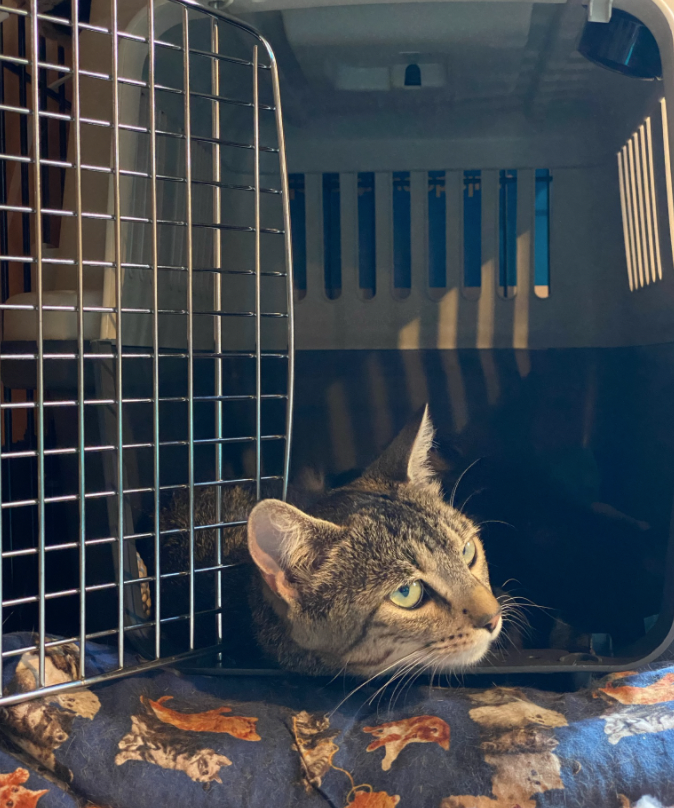 The first time I saw Mitsy react to quiet singing and humming was when, 3 weeks after delivering her kittens, I was preparing to add a second crate to our feline kindergarten. This was not going to be a silent process: the crates rattle and I had to maneuver some furniture and other stuff around in the basement. And all of this was happening right in front of Mitsy’s cage and I was kind of nervous about that. In order to calm myself down, I was softly singing to myself. Just nonsense songs and nursery rhymes. It did not register with me immediately, but all of a sudden I realised that Mitsy looked very serene and calm, her chin on her paws, her head on the threshold of the carrier. Eyes slowly blinking and closing. She slept through most of my work and because of that, the kittens also remained asleep.
