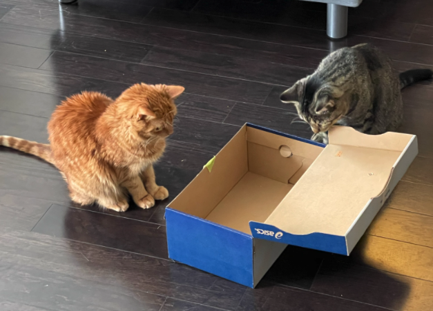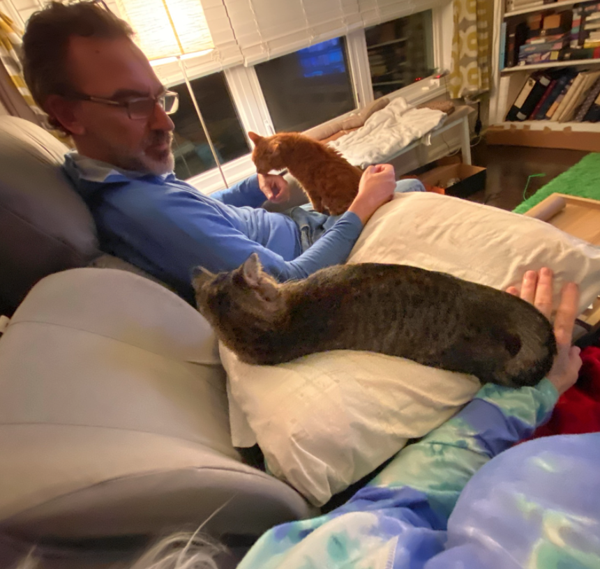 We cannot believe this is the same cat that came to our yard, so afraid of people and always hungry; never time to relax, no experience with things like cuddling and playing. But we are getting there, slowly but surely! I have set a personal record in quick snapshots for some of the pictures below. Long live the iPhone camera, even though sometimes conditions are too dark for a focused image. But you will get the picture! Click to enlarge. Enjoy!