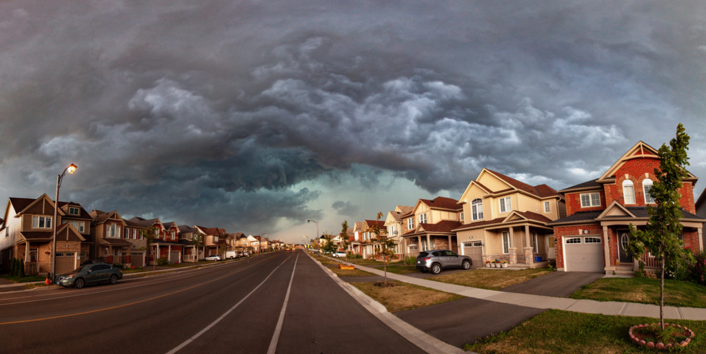 ‘Day of Reckoning’ is a big canvas print (100 cms wide) of a unique scene captured during a big storm. Nothing in this photograph has been altered by photo-editing software, but the computer has helped merge the multiple shots I took into a single one. Using this panoramic technique is a wonderful way to truly convey the natural beauty and daunting power of Mother Nature. By using multiple shots and merging them, the movement and atmosphere of natural phenomenons can be depicted in all of its glory. This was the face of a storm that brought us hailstones the size of golfballs! The cloud-formations and colouring led me to the title ‘Day of Reckoning’…