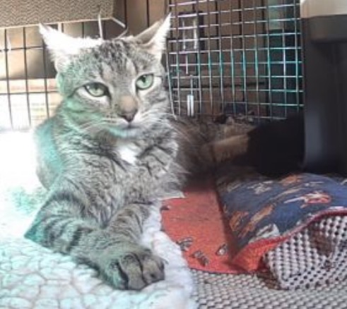 I then left her alone for awhile and was waiting for her to go into the Nest in the evening so that I could change the litter box. When I had taken the dirty one out, I noticed that there was quite a spill in the back. What to do? Leave it there? How would I clean it up? Thinking error: I spread a puppy pad over the full width of the crate, which meant I could not remove the spill without moving the carrier. NOT an option! Mitsy was first just watching me from the inside of the Nest, she was with her head in the back and gave me that creepy “Velociraptor” look through the air holes of the Nest. But she was still OK. Then, instead of putting in the clean litter box I decided to hold part of the puppy pad up so that I could scoop the spill in a dustpan. Mitsy was NOT amused, turned around in the carrier and came out hissing, showing teeth. So I decided to let it go. I got some of the spill out and then carefully put the fresh litter box in the crate. I had the wisdom to wear my bite gloves, although I think they are part of her aggressive reaction. She does not like them, I think. Or am I projecting? Who knows, someone with gloves like that may have tried to catch her in the past. Well, good luck with that! On good days I sometimes think she can be socialised, but in moments like these, I think: no way!
