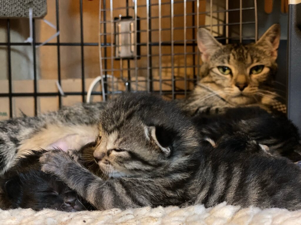 At least we are doing something good for the kittens, I tell myself. They look really healthy and lively. It was funny, I was tinkering with the second crate and two of the grey kittens sat there with mom, in the carrier, their heads held high, eyes pointed to me. I am sure that they are starting to see more clearly and reacting to sounds and visual stimuli. Which is adorable. I need to remind myself that this is why we are doing this: to allow Mitsy to be a dedicated and full time mom and to produce a bunch of very healthy kittens that will bring lots of joy to their future adopted families.