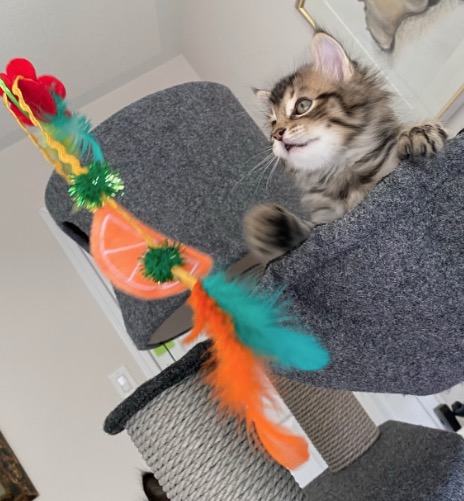 Play is one of the keys to the heart of your kitten, I strongly believe that. The most important people in a domestic cat’s life are the person who brings food and the person who plays with them. If your cats develops into a lap cat, then the person whose lap they sleep in is number 3 on that list. Play is not just throwing a ball and letting them hunt it. Get involved and play with them until they pant or lie down and fall asleep! The preference it to do it before mealtime to prevent stomach pains. Whenever you play with them, do it in the same spaces, so that they do not even think about using your furniture to sharpen their nails.
