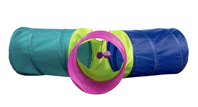 Our resident cats never took to tunnels as a toy. But the kittens use the one we bought for them so intensely, that I cannot imagine where else their play energy would go. We have the model named ‘Whisker City® Pop-Up Tri-Tunnel Cat Toy’ (for sale in most pet stores) and it looks like this: