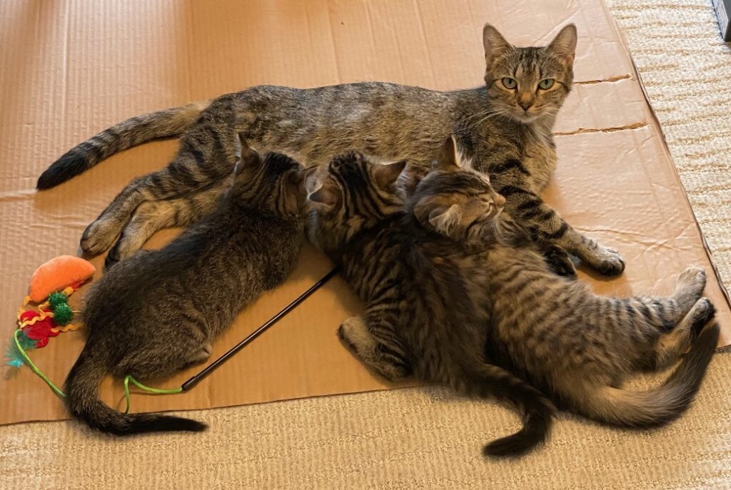 We knew it was coming, but today it became real: part of our litter of kittens will move to an Adoption Centre the weekend of 25 September. There is a large cat condo available and we have decided to use it. Two kittens will remain with the mother cat, so that she does not develop ’empty-nest’ syndrome right away. Ultimately these kittens will come up for adoption when mom gets spayed. Spaying will change her life in many ways and she will not miss the kittens as much, as she recuperates from surgery and the hormone flow in her blood calms down. This sets her up for a new future that might play out as an indoor domesticated cat, or as an indoor/outdoor cat in a protected colony or private property. There are still many open endings about that right now…