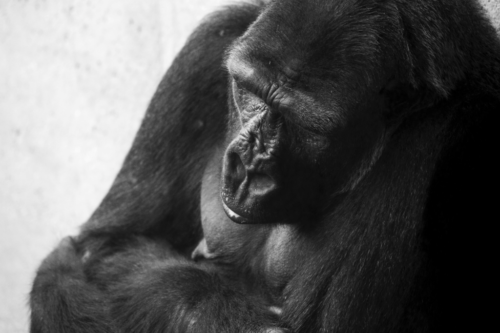 Meet Jabari. I met him when I was part of the Camera-team of the Philadelphia Zoo. And I had no clue that he was in his last few years. His keepers considered him mature but healthy, in his late twenties. He was a Western Lowlands Gorilla. As a member of the Camera-team we were sometimes allowed in the Zoo a little earlier or later than the general public. I loved those moments because the animals were usually more at ease and I could get a unobstructed view of them, by myself.